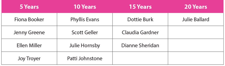 Years of Service – 2025 Milestones